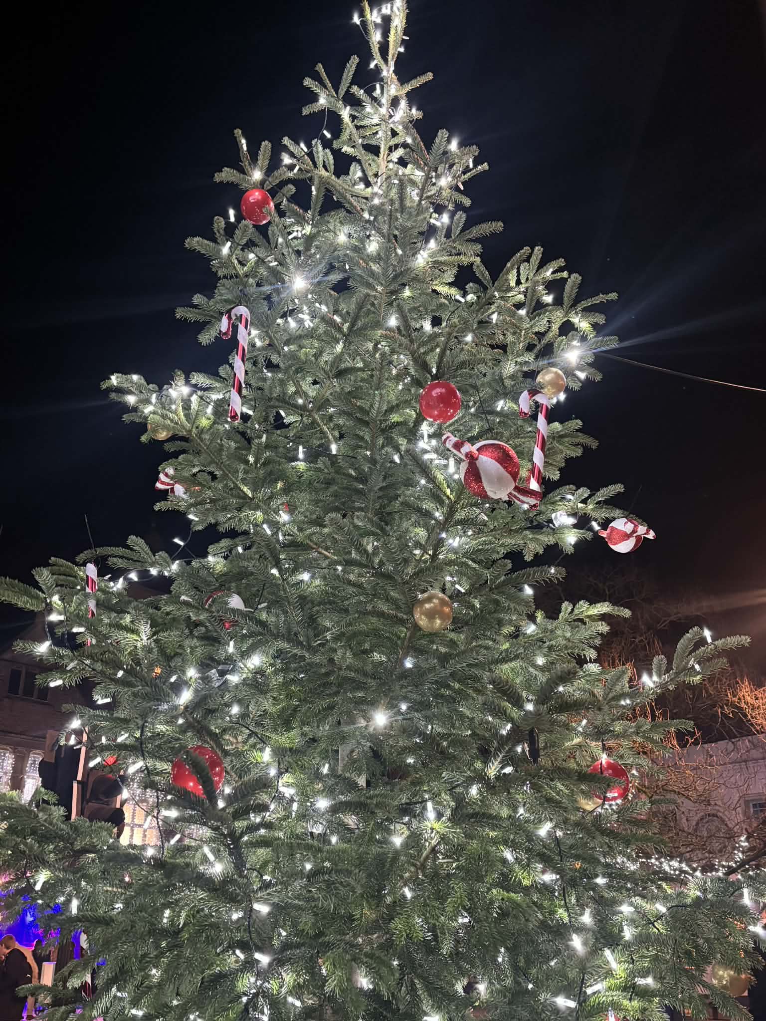 This year, the honour of switching on Calne’s Christmas lights was given to art competition winners Cecelia and Tallilah. they joined the Mayor Ian Thorn on the main stage, where crowds counted down to the big moment. Seconds later the town centre lit up, followed immediately by a fireworks display above the rooftops.
