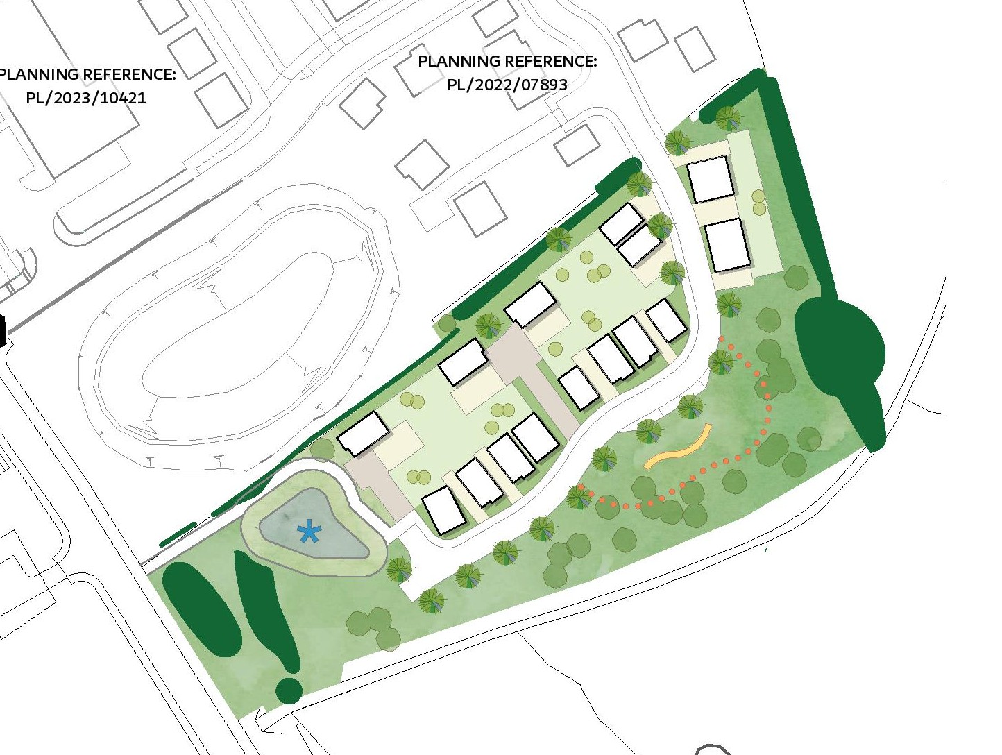 Amended planning proposals have been submitted for the site between the existing attenuation pond and Abberd Brook, east of Spitfire Road in Calne. The outline application (ref. PL/2025/05943) now includes a revised layout and additional details covering landscaping, access and infrastructure.
