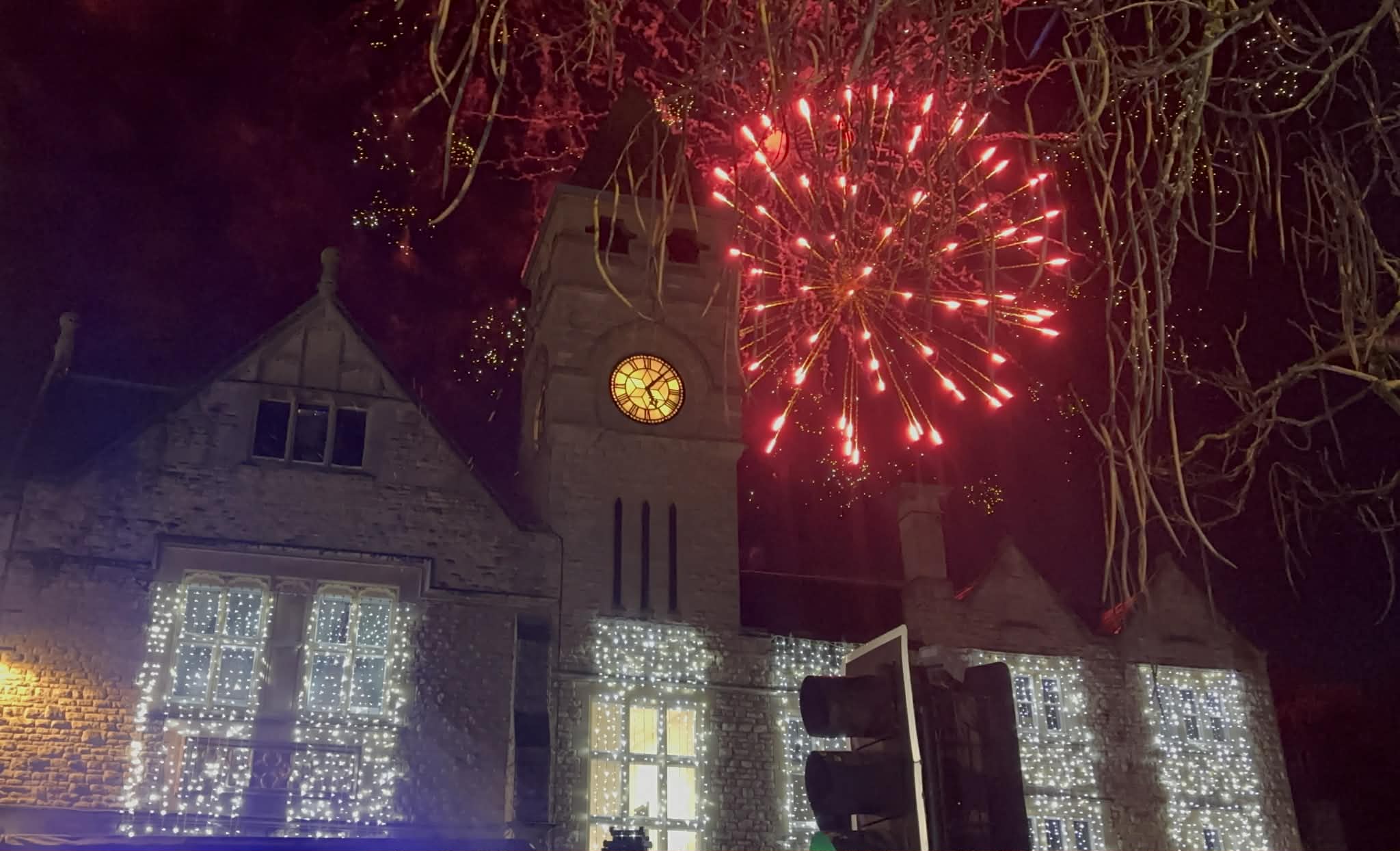 This year, the honour of switching on Calne’s Christmas lights was given to art competition winners Cecelia and Tallilah. they joined the Mayor Ian Thorn on the main stage, where crowds counted down to the big moment. Seconds later the town centre lit up, followed immediately by a fireworks display above the rooftops.