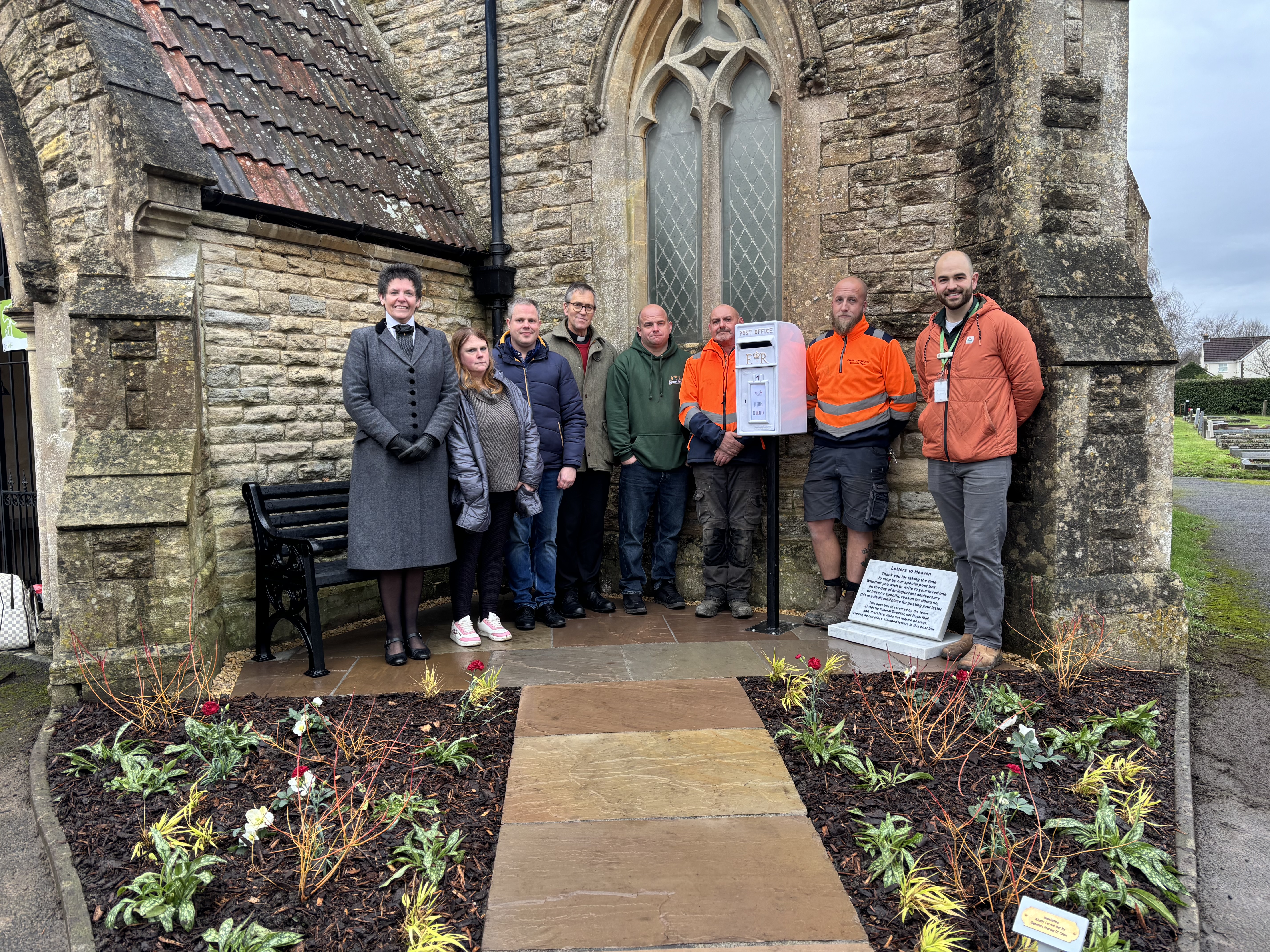 Odette Funeral Director funded the post box and accompanying tablet, while Signature Fencing volunteered their time to install it and lay the surrounding paving, with materials supplied at a discounted rate by Chalford Building Supplies. Calne Town Council also contributed a bench to encourage visitors to pause and reflect.