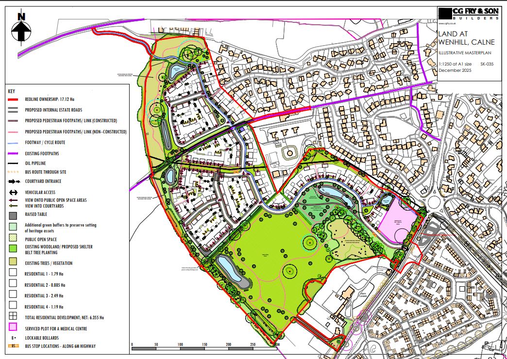 The original proposal, first reported by Calne News in July 2025, includes housing, a serviced plot for a new medical centre, areas of public open space and associated infrastructure. The delivery of the medical centre remains dependent on securing funding from the NHS Integrated Care Board and is outside the direct control of the developer.