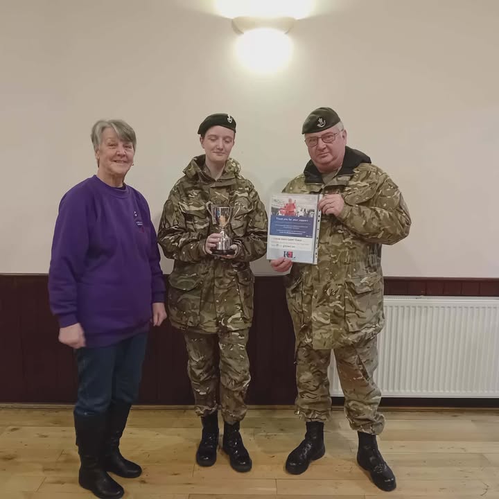 The Limyoe Trophy was awarded to Charlotte Bowden of the Calne Detachment, Sword Company Army Cadet Force. A certificate was also presented to Staff Sergeant Karl Bainbridge on behalf of the detachment in recognition of its fundraising efforts, after raising £5,067.66.