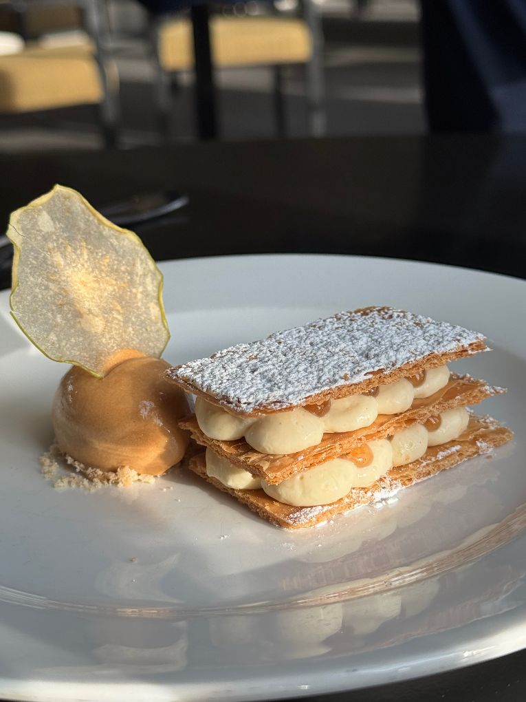 We were both full from our starters and mains but felt we really ought to at least try a dessert in order to share our thoughts, so like true heroes, we decided to share the 0 Mile mille-feuille of Bowood apples and pears, served with salted caramel ice cream. It was small in size so probably not one to share under normal circumstances. My dining companion remarked that it was "a crisp and delicate dessert and a lovely end to our perfect meal. While the dessert was undeniably delicious, the richness of the salted caramel did slightly overshadow the fruit itself for me.