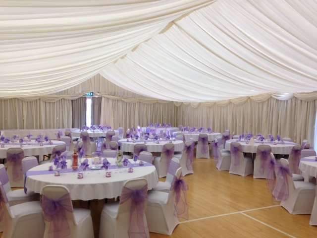 The Indoor Marquee Package is great value for money and transforms a sports hall into a glorious marquee setting without the feeling of being in the outside or a sports hall.