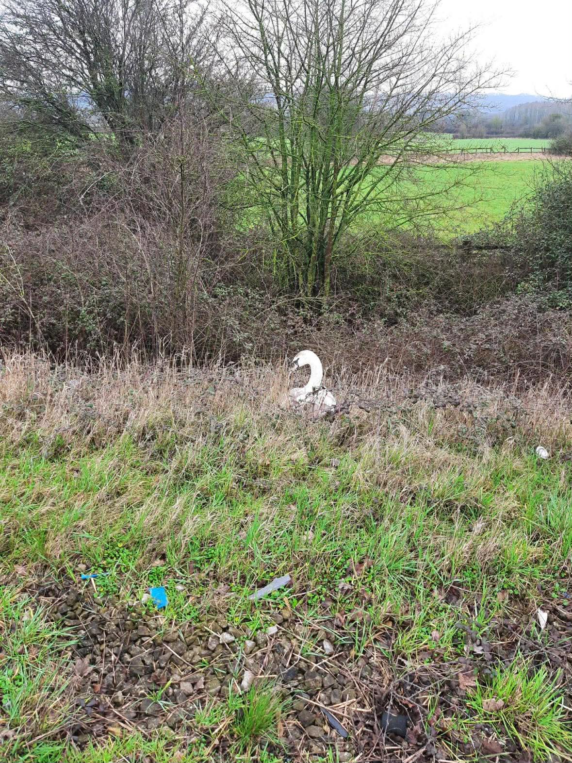 One swan was found on the carriageway, while the second remained nearby on the embankment.